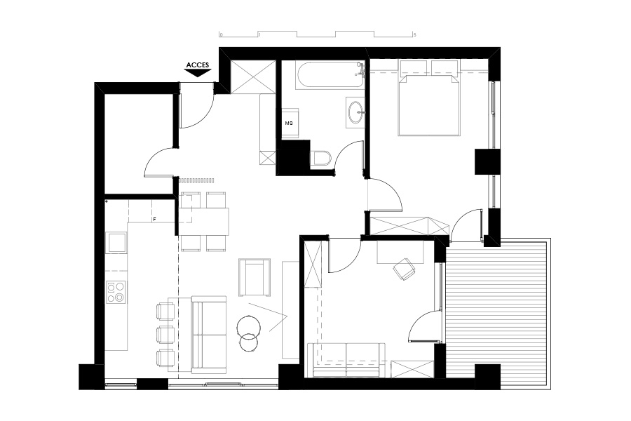 Gesturile simple și eficiente stârnesc oricărui chiriaș o dorință de a locui aici, de a popula apartamentul cu bagajele aduse, cu cărțile, accesoriile și bucățelele de viață aduse de acasă. Chiar și gândurile pot fi scrise cu cretă pe un perete al bucătăriei finisat cu o vopsea tip ”blackboard”.